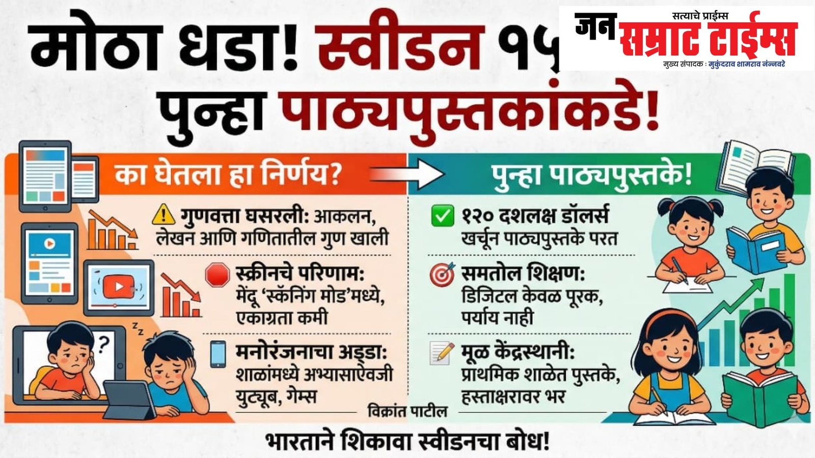 >> स्वीडनने 2009 साली एक क्रांतिकारी निर्णय घेतला. शाळांमधील पारंपरिक पाठ्यपुस्तके बाद करून त्यांच्या जागी डिजिटल स्क्रीन आणि टॅबलेट आणले. “भविष्यातील शिक्षण” असे बिरुद मिरवत हे धोरण संपूर्ण देशभर राबवण्यात आले. युरोपातील सर्वात प्रगतशील, तंत्रज्ञानस्नेही देश म्हणून जगाने स्वीडनच्या या पाऊलाचे कौतुक केले. शाळा ‘स्मार्ट’ झाल्या, वर्गखोल्या ‘डिजिटल’ झाल्या, पण 15 वर्षांनंतर हाच देश आता तब्बल 120 दशलक्ष डॉलर्स म्हणजे सुमारे एक हजार कोटी रुपये खर्च करून पुन्हा छापील पाठ्यपुस्तके शाळांत आणत आहे. हा केवळ धोरणबदल नाही, हा एका मोठ्या चुकीचा जाहीर कबुलीजबाब आहे.
